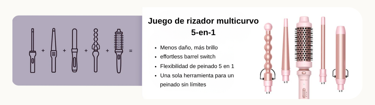 A diferencia de otras herramientas de peinado, el Multi Curl 5-en-1 utiliza tecnología avanzada de calor cerámico-turmalina para crear rizos perfectos sin dañar el cabello. Su diseño intercambiable te permite lograr cinco estilos diferentes con una sola herramienta, manteniendo tu cabello suave, brillante y libre de frizz. Ideal para todo tipo de cabello y para quienes buscan resultados de salón desde casa.